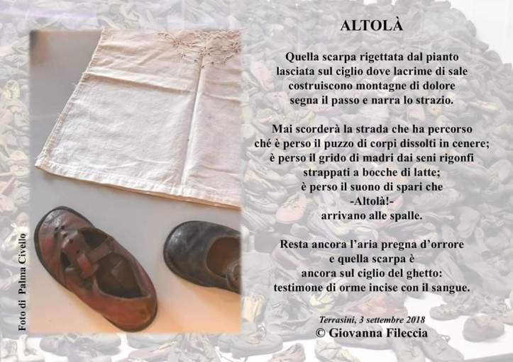 ALTOLÀ è una poesia che vorrei non aver scritto eppure è qui scaturita da un vissuto non mio, non nostro, un vissuto che noi, oggi, possiamo solo immaginare.