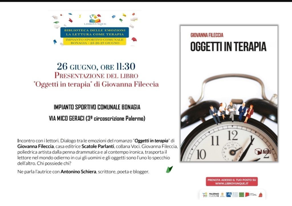 Vi ricordo che sabato 26 giugno ne parlerò a Palermo durante Librovunque: Biblioteca delle emozioni: la lettura come terapia.