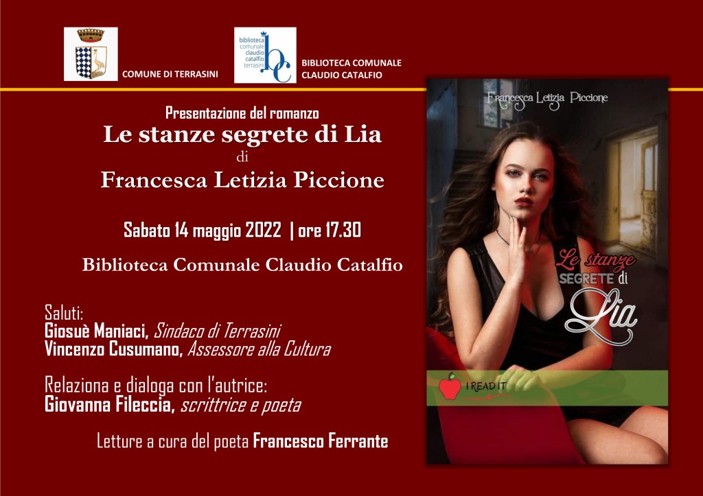 Siamo lieti di invitarVi alla presentazione del romanzo Le stanze segrete di Lia di Francesca Letizia Piccione, edito dalla Casa Editrice PubMe nel 2021.