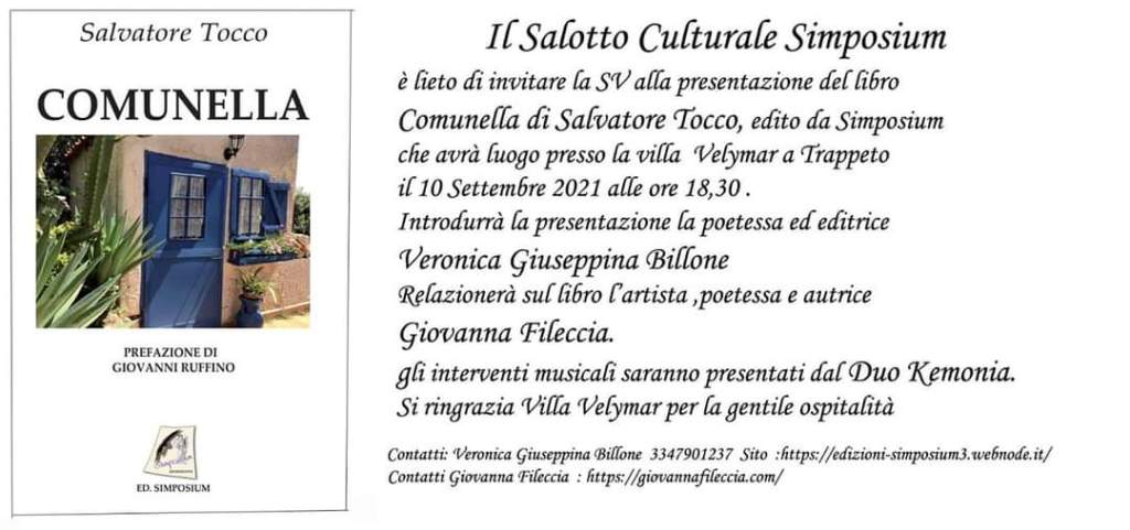 Intervento a cura di Giovanna Fileccia per la prima presentazione del libro. Venerdì 10 settembre 2021, ore 18.30, presso Villa Velymar, Trappeto (PA). Introduce l’editrice Veronica Giuseppina Billone. Intermezzi musicali del duo Kemonia.