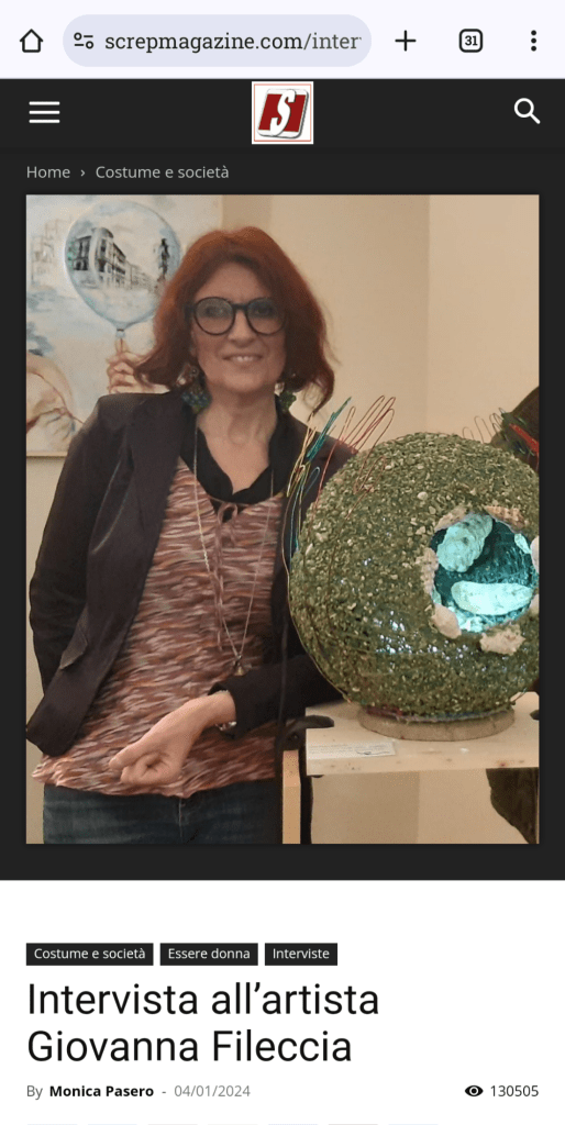 Abbraccia l’arte a 360 gradi portando innovazione e inventiva. In un mondo apparentemente saturo di innovazioni artistiche, arriva lei! Creando un nuovo modo di unire l’arte scultorea alla poesia. Non c’è mai fine alla creatività umana, c’è sempre una strada fino ad ora non battuta, e Giovanna Fileccia l’ha trovata! Con tenacia e professionalità porta avanti il suo mondo artistico colmo di soddisfazioni e riconoscimenti che negli ha meritato per tutto l’impegno e il lavoro svolto in questi settori, lanciando messaggi importanti, soprattutto nel mondo scolastico, sensibilizzando i più piccoli alla cura e il rispetto dell’ambiente. La loro Terra. La loro casa.
