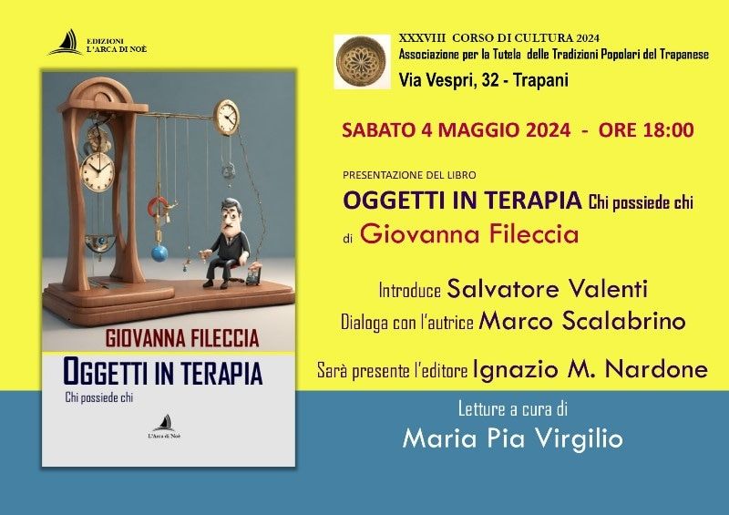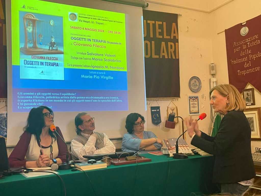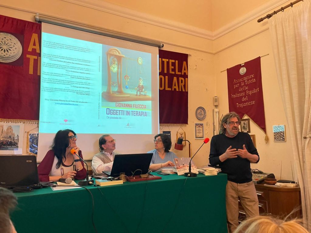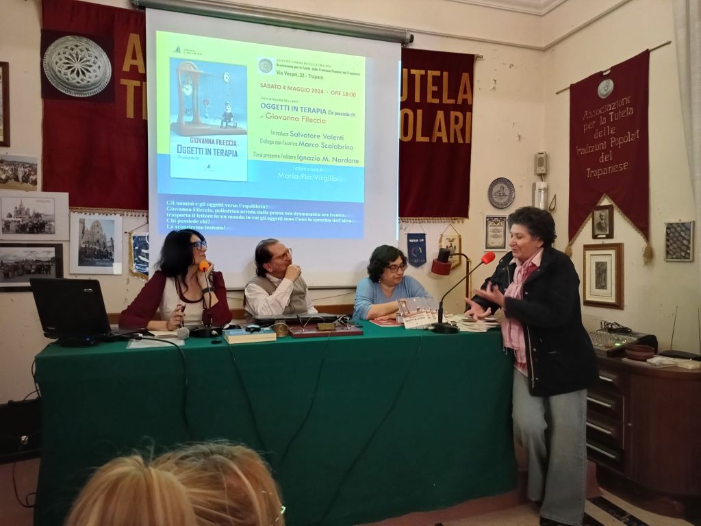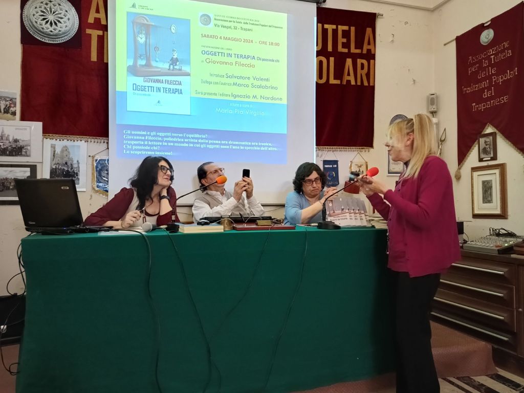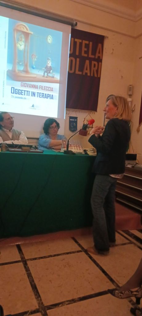 Alcuni scatti e un breve video che ben raccontano la presentazione di sabato 4 maggio di “Oggetti in terapia. Chi possiede chi“, Edizioni L’Arca di Noè Sono felice e grata a Marco Scalabrino, Maria Pia Virgilio, Salvatore Valenti, Ignazio Mario Nardone e i tantissimi che in attento silenzio ci hanno ascoltato. Tante le domande sia di Marco che dal pubblico e tanti libri acquistati… Chissà che impressione ne avrete!