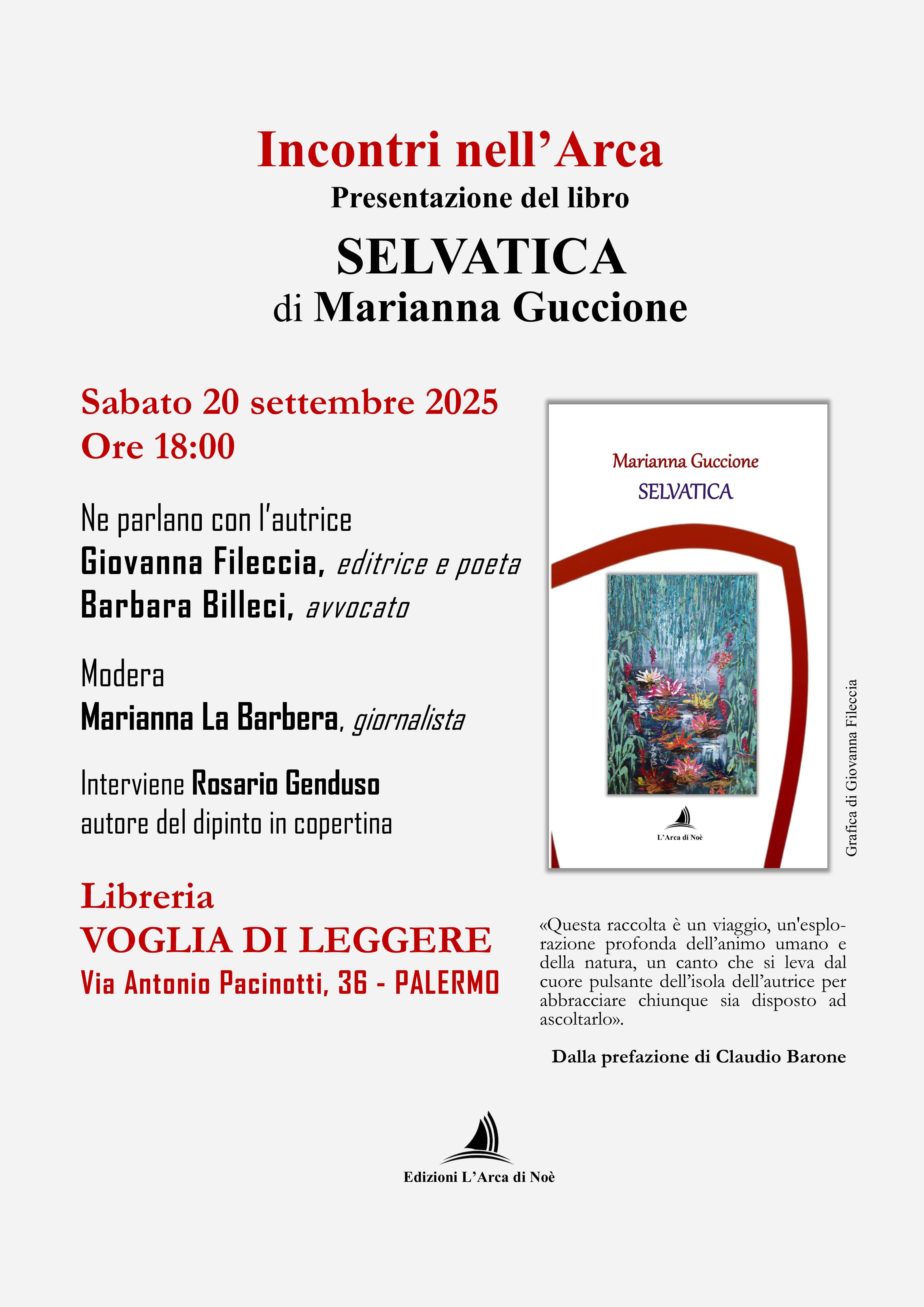 Per INCONTRI NELL’ARCA presentazione a Palermo presso la Libreria Voglia di Leggere. Sabato 20 settembre 2025.